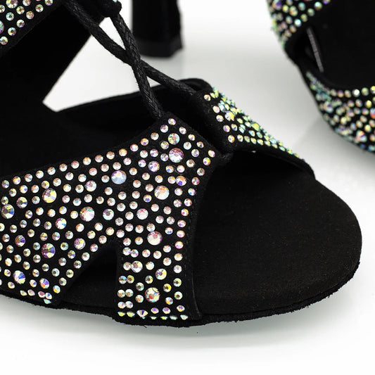 Stylish Black Microfiber Latin Dance Boots With Crystals